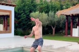 身体素质无敌了!43岁伊布跳上泳池漂浮垫丝滑连接倒钩打门!
