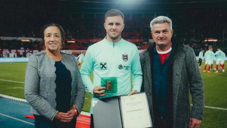 10月16日讯 莱比锡官网消息,克里斯托夫-鲍姆加特纳在新赛季伊始表现出色,已经打入两球并有一次助攻。周三,这位奥地利国脚从国家队归来时,手中还拿着一个特别的奖杯。不过,这一次吸引人们注意的并不是他的足球成就。鲍姆加特纳因社会贡献而获公平竞赛奖。